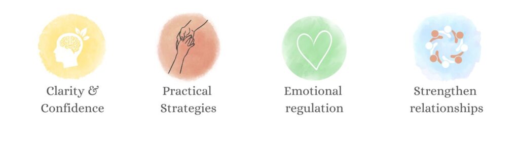 We begin by understanding patterns, identifying needs, and mapping out what’s contributing to the current challenges. This creates a clear, personalised starting point and ensures support is structured around you — not a generic template.