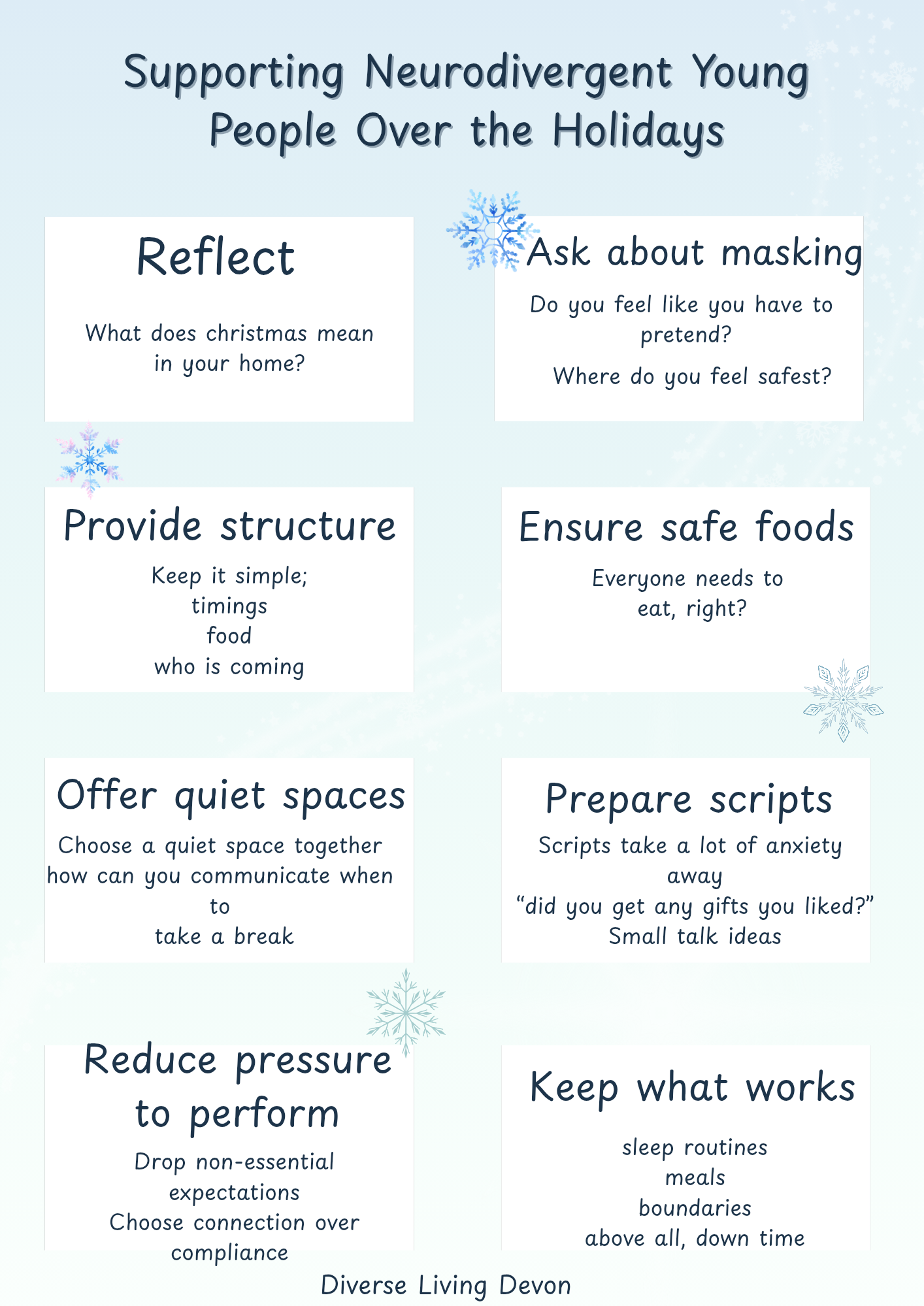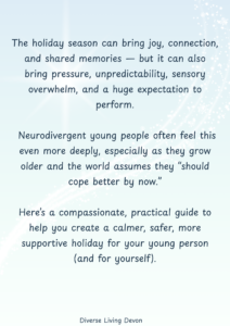 Give your young person the gift of calm, clarity, and connection this Christmas with this beautifully designed, ND-friendly holiday support guide and planner. Created with neurodivergent teens in mind — and grounded in years of experience supporting autistic, ADHD, and otherwise neurodivergent young people — this resource helps families approach the festive season with understanding, flexibility, and compassion.